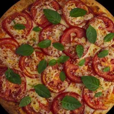 ingredientes: molho de tomate, mussarela, tomate e manjericão fresco.