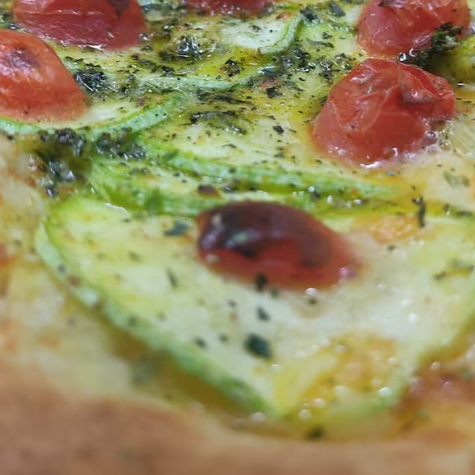ingredientes: molho de tomate, mussarela, tomate e manjericão fresco.