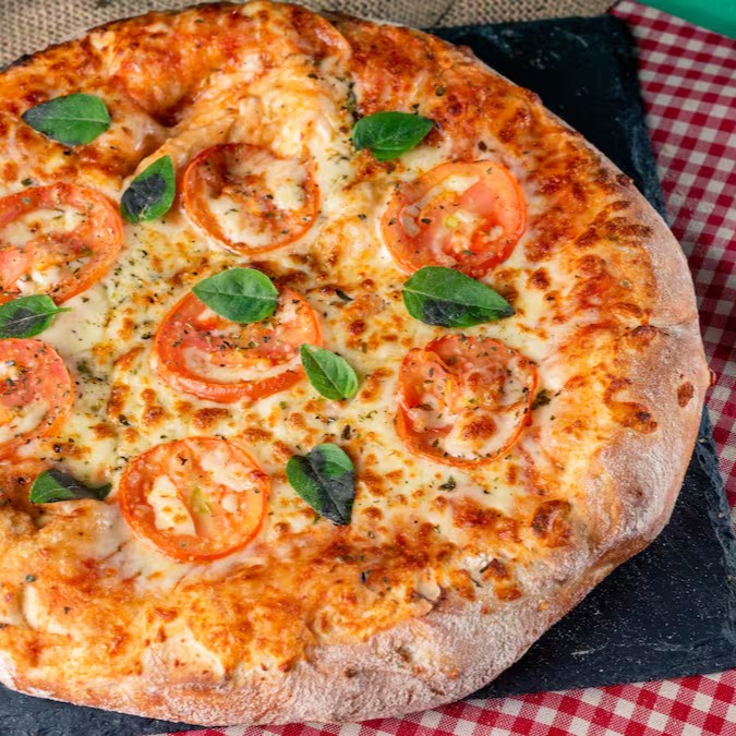 tomate, pimentão, cebola, Queijo mussarela, e Orégano.