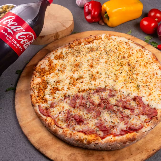 Pizza Big De Calabresa, Frango Com Catupiry E 4 Queijos + Coca Cola (2 Litros)