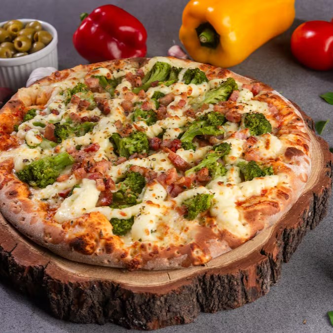Delicioso Calzone feito com um Molho especial,mignon acebolado, muito bacon ,palmito e Catupiry Original, azeitonas fatiada,champignon,mussarela,e