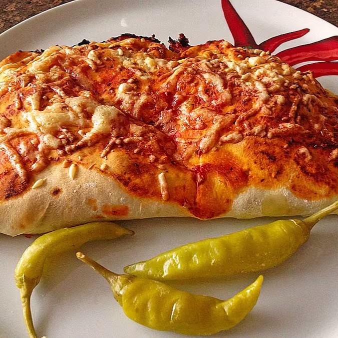 Delicioso Calzone Recheado, Catupiry ,Parmesão, muito Provolone, Queijo mussarela e Orégano.