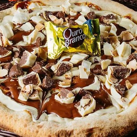 Nosso 'Mini Cz / Ouro Branco' da categoria 'Mini Calzone' é uma combinação irresistível de sabores. Este prato apresenta uma generosa porção de mussarela derretida que se funde harmoniosamente com o rico chocolate branco. Adicionamos peças do amado bombom Ouro Branco, que trazem um toque de sofisticação e indulgência. Finalizamos com um doce e sedoso leite condensado que equilibra perfeitamente os sabores e intensifica a experiência gastronômica. É, sem dúvida, uma escolha divina para os amantes de uma boa pizza calzone com um toque doce e especial.