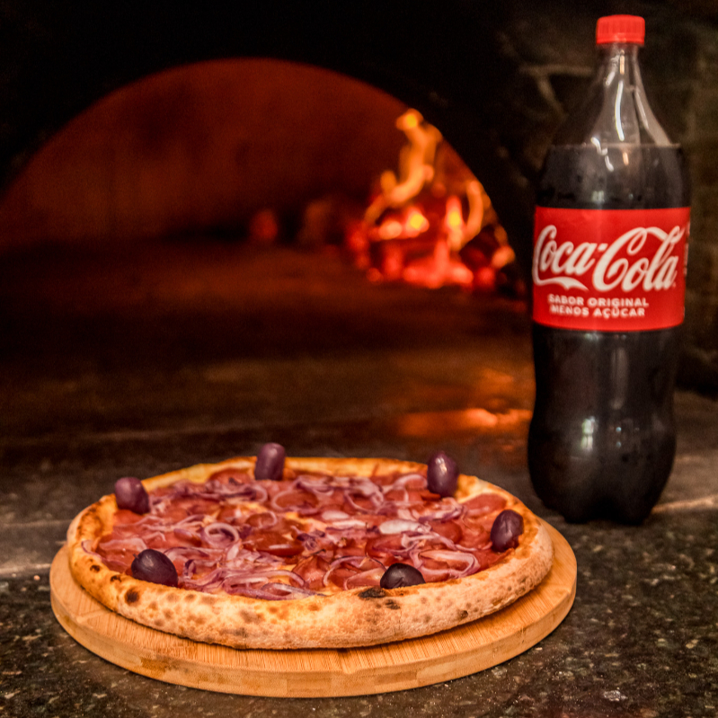 Escolha uma deliciosa pizza acompanhado por uma Coca-Cola 2 litros