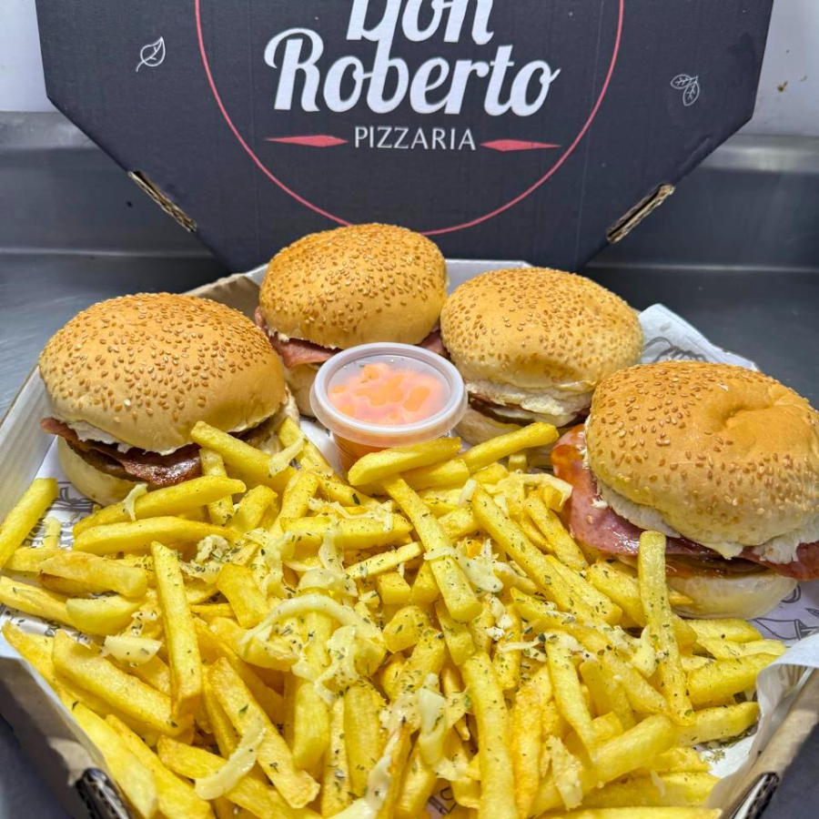 4X- HAMBÚRGUERES + 600G DE FRITAS