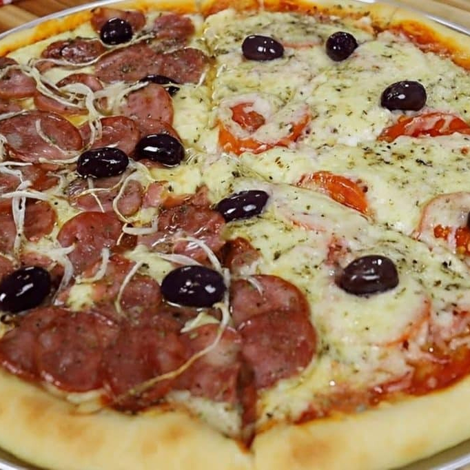 Mussarela, calabresa, Catupiry e orégano