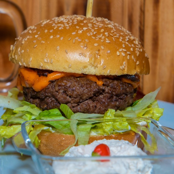 Molho especial e hambúrguer.