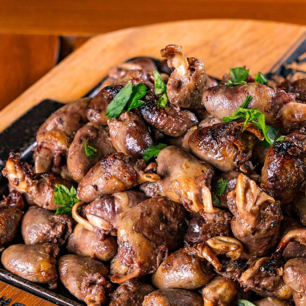 Molho especial da casa, mussarela, coração de frango picado, cebola e orégano.