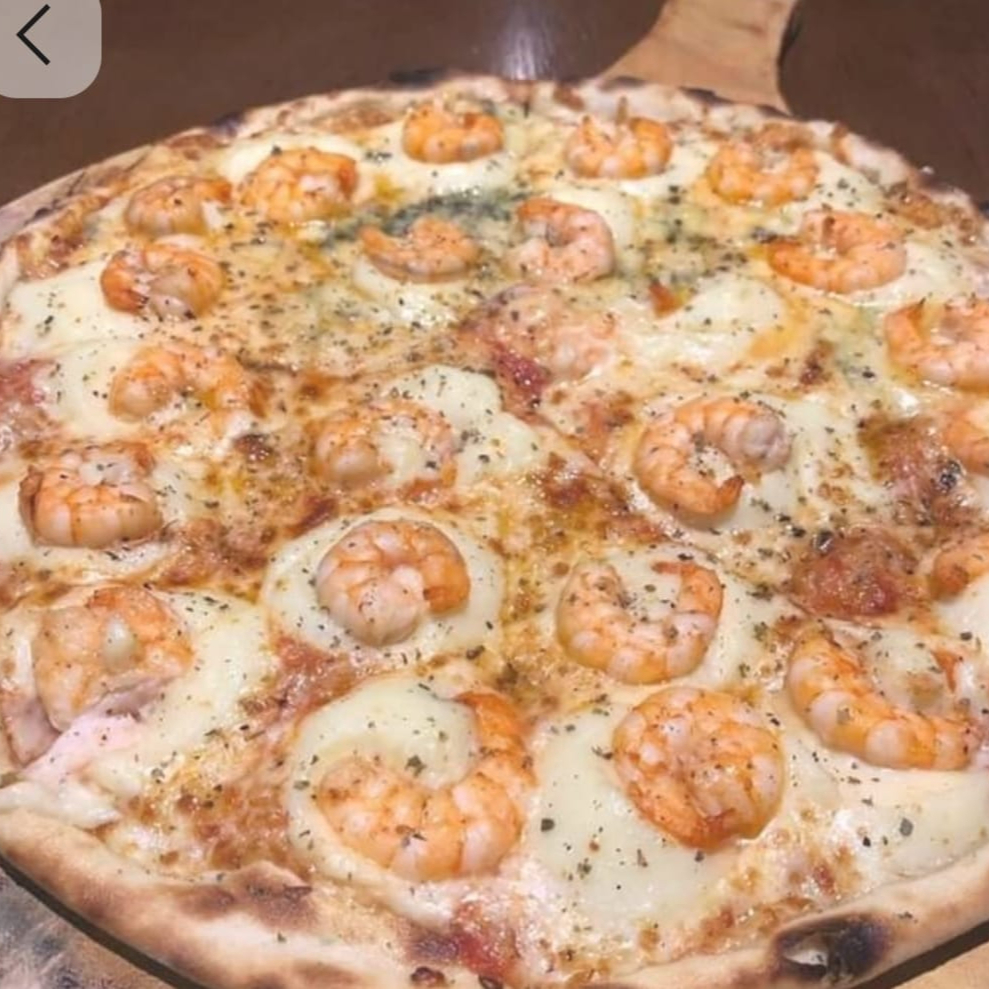 Mussarela, camarão, molho da casa, palmito e cream cheese.