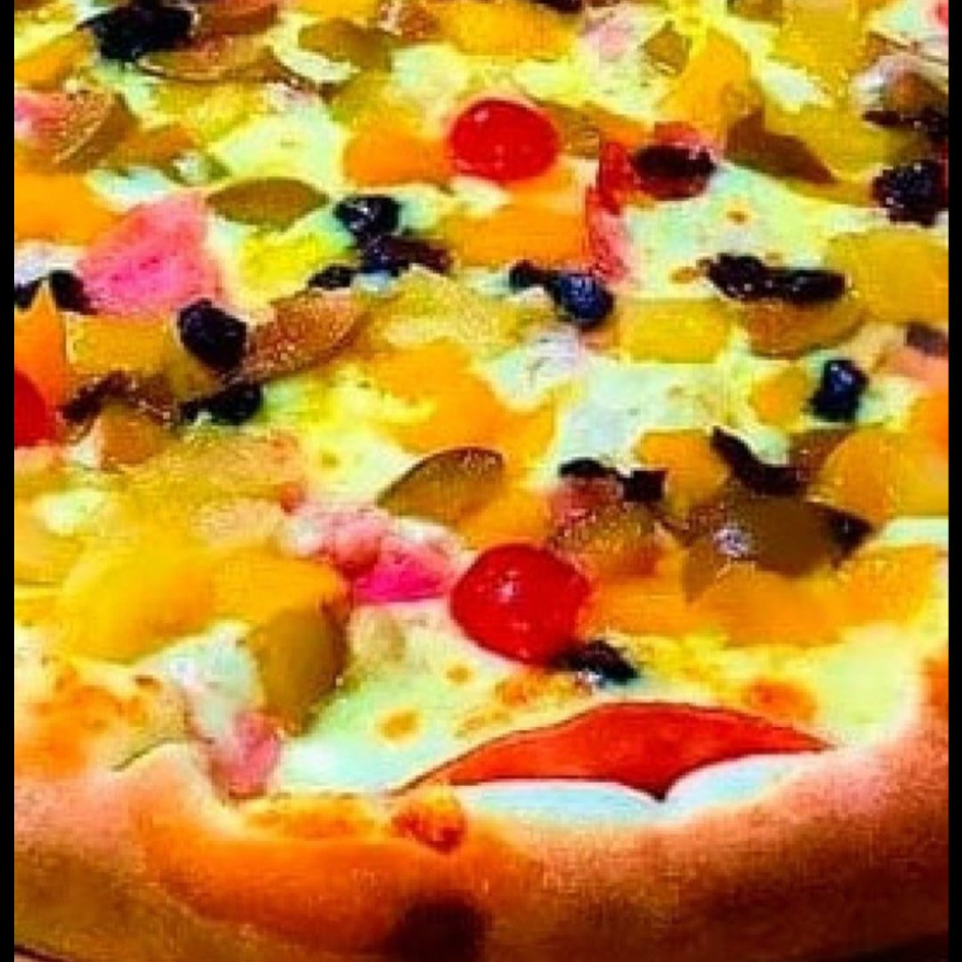 Molho especial da casa, mussarela, lombo, catupiry, parmesão, azeitona e orégano.