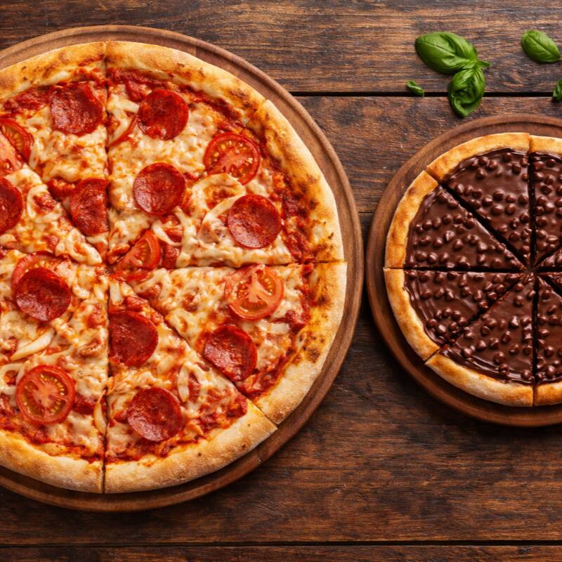 Pizza Grande Tradicional + Pizza Broto De Chocolate
