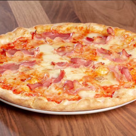 Simplicidade que encanta! Molho especial, mussarela derretida, bacon crocante e orégano. Uma combinação clássica e irresistível!