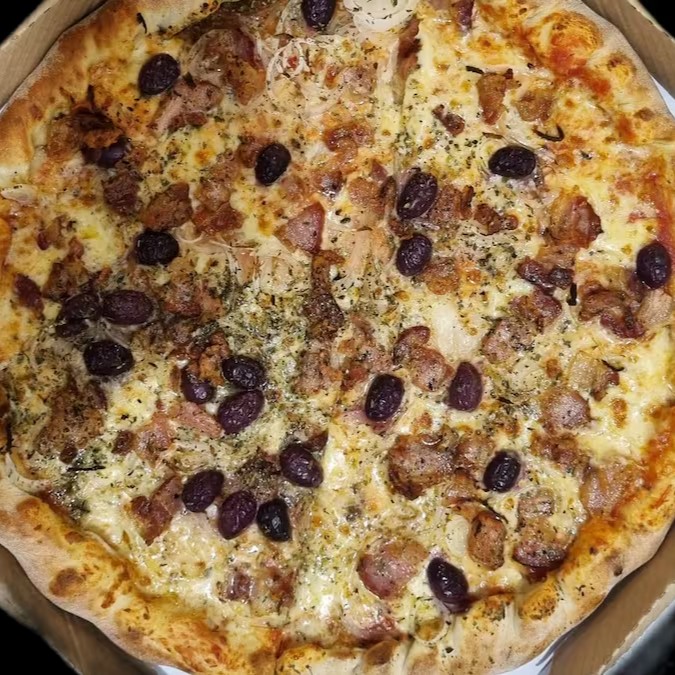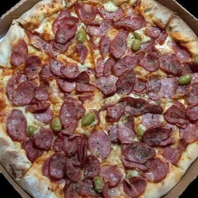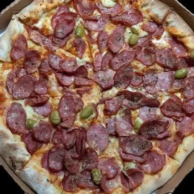 Mussarela, calabresa, milho verde, ricota, azeitonas e orégano.