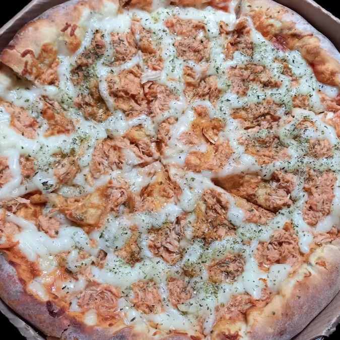Mussarela, ricota, atum, ovos, azeitonas e orégano.