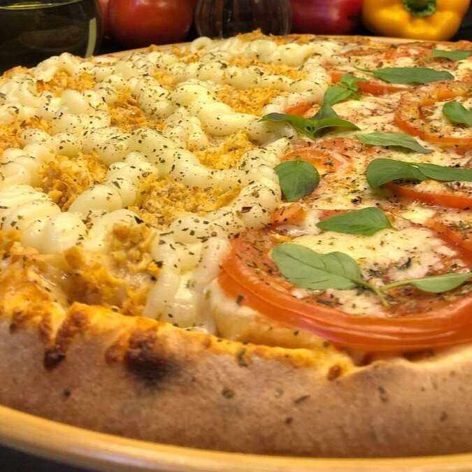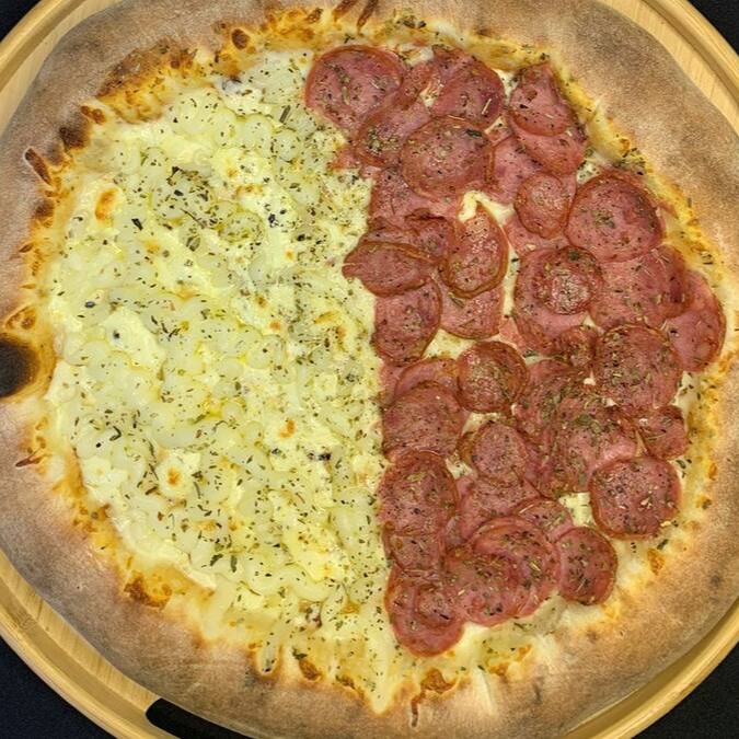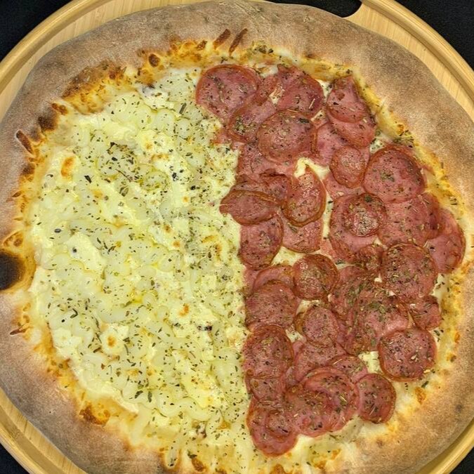 Pizza Big 12 fatias (calabresa e quatro queijos)
