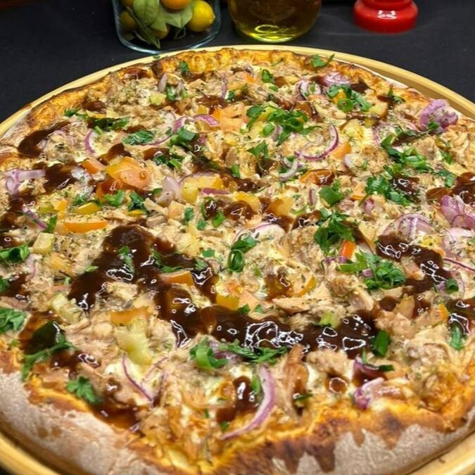 Pizza Big 12 fatias (Frango com Catupiry e Portuguesa)