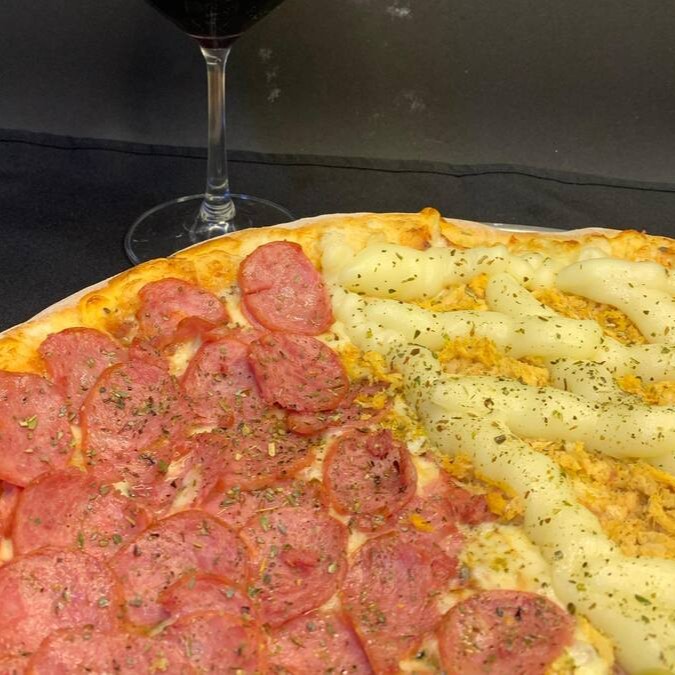 Pizza Big 12 fatias (calabresa e frango com Catupiry)