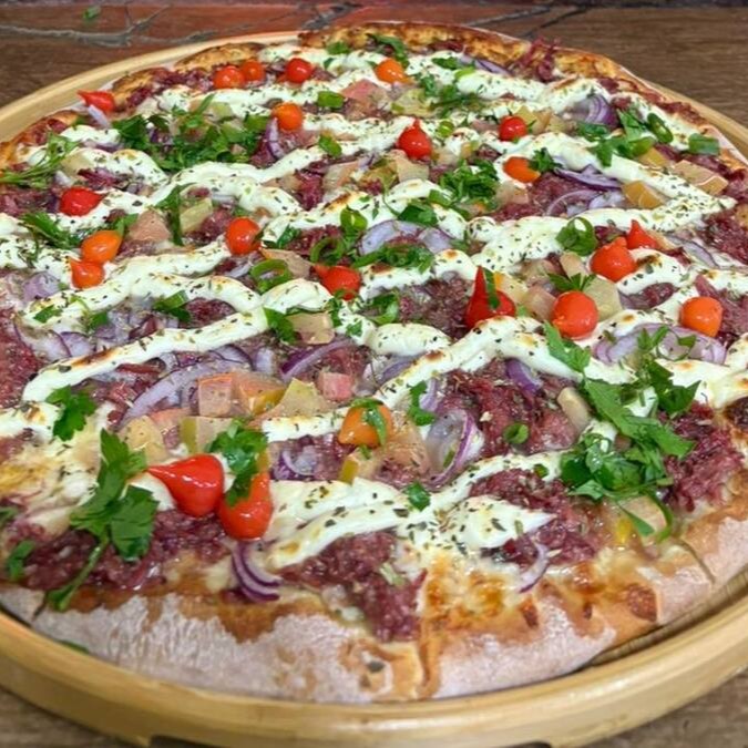 Mussarela, lombo, bacon, champignon e catupiri.