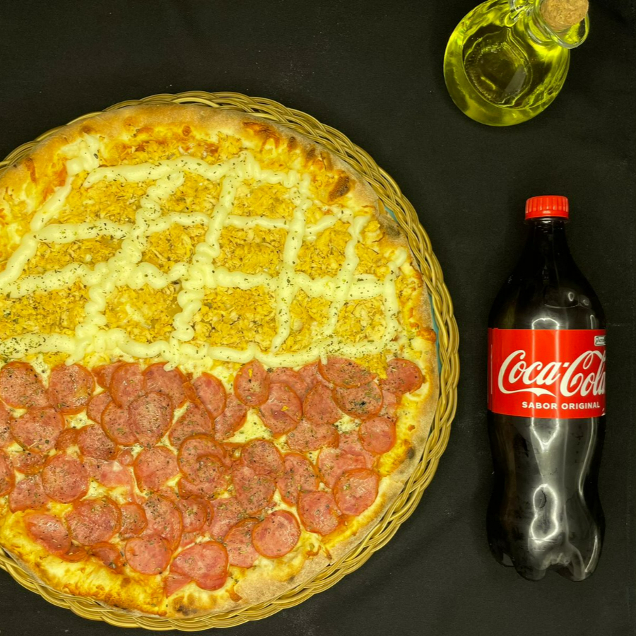 Pizza Grande (08 fatias e 2 sabores) + Coca-Cola 2 L