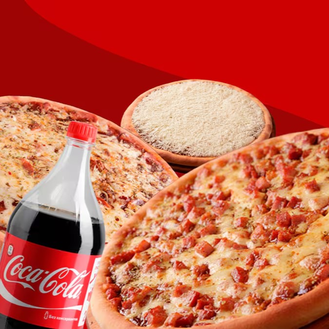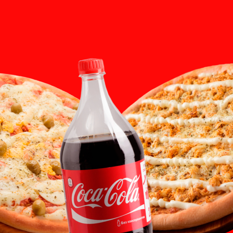 2 Pizzas Big 12 fatias ate 2 sabores por pizza ! Mais uma Broto Doce mais Coca-Cola 2 litros