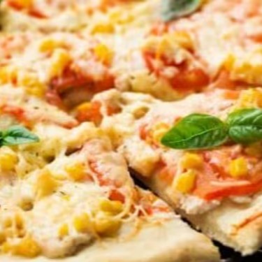 Massa com base de molho de tomate e mussarela, com bacon crocante e milho verde fresquinho.