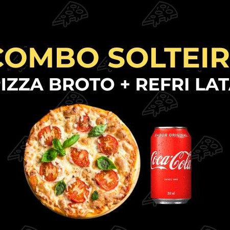 Combo de pizza broto tradicional + refri lata 350ml. *Pizza de 25cm de diâmetro e refrigerante lata de 350ml.