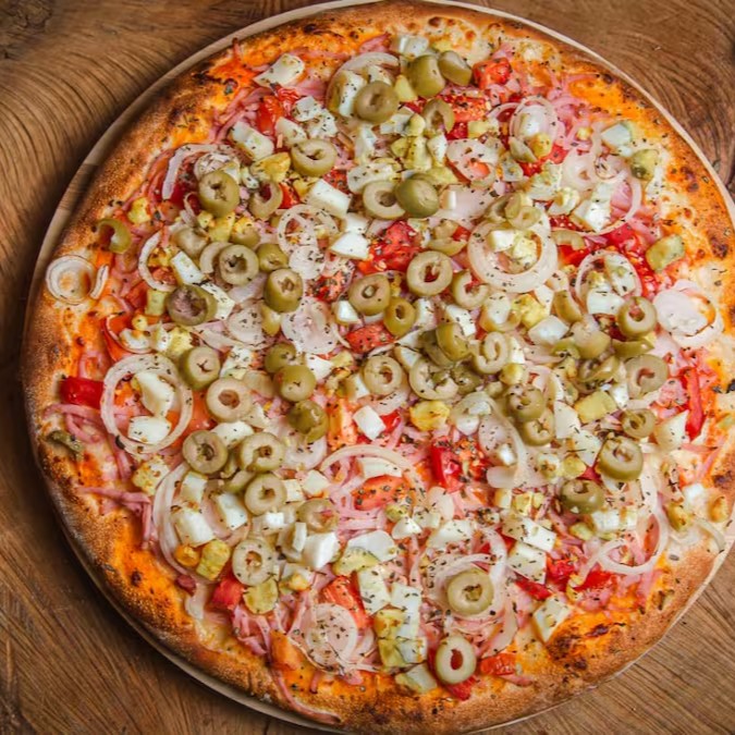 Pizza gigante - 12 fatias e 3 sabores Selecione Até 3 Sabores Pizzas Especiais - Pizzas Tradicionais - Doces