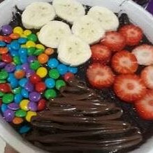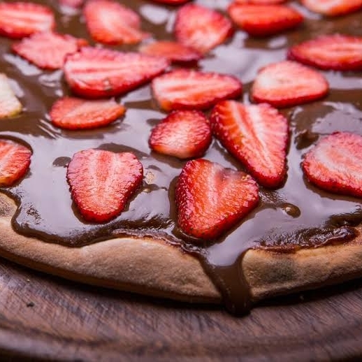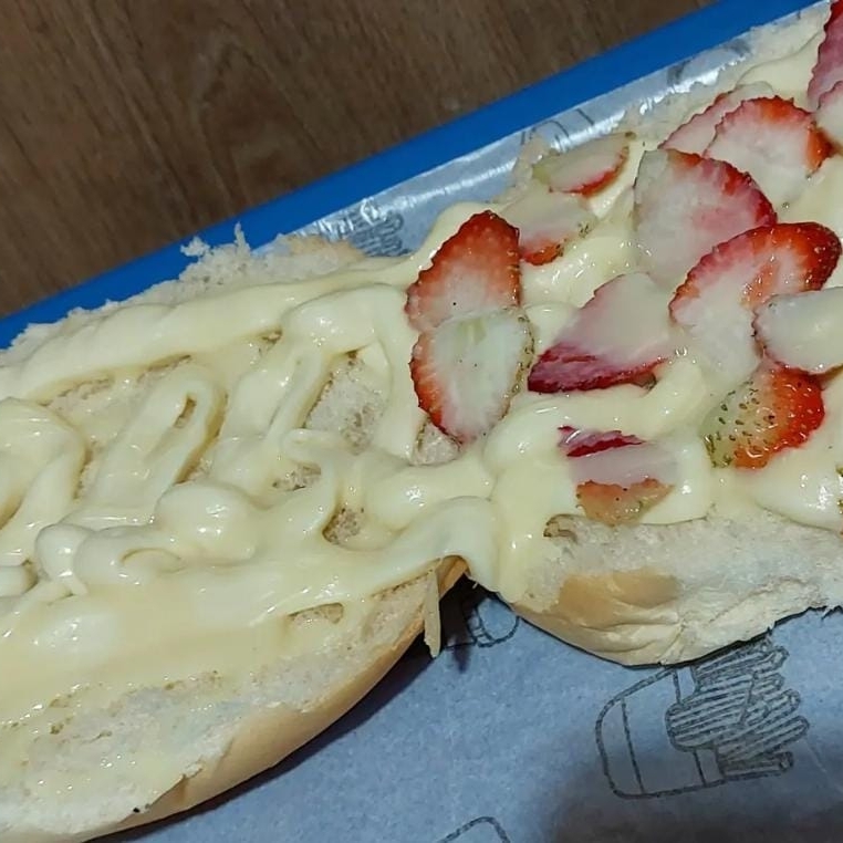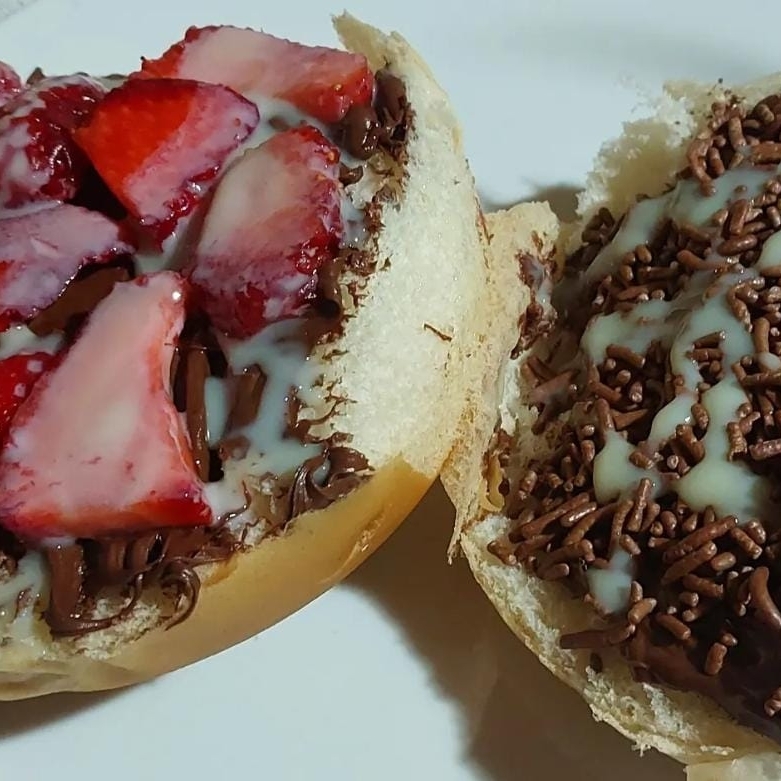 Pão, chocolate ao leite, morango, granulado de chocolate e leite condensado
