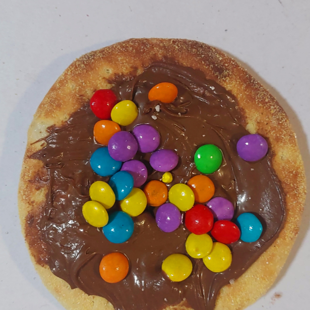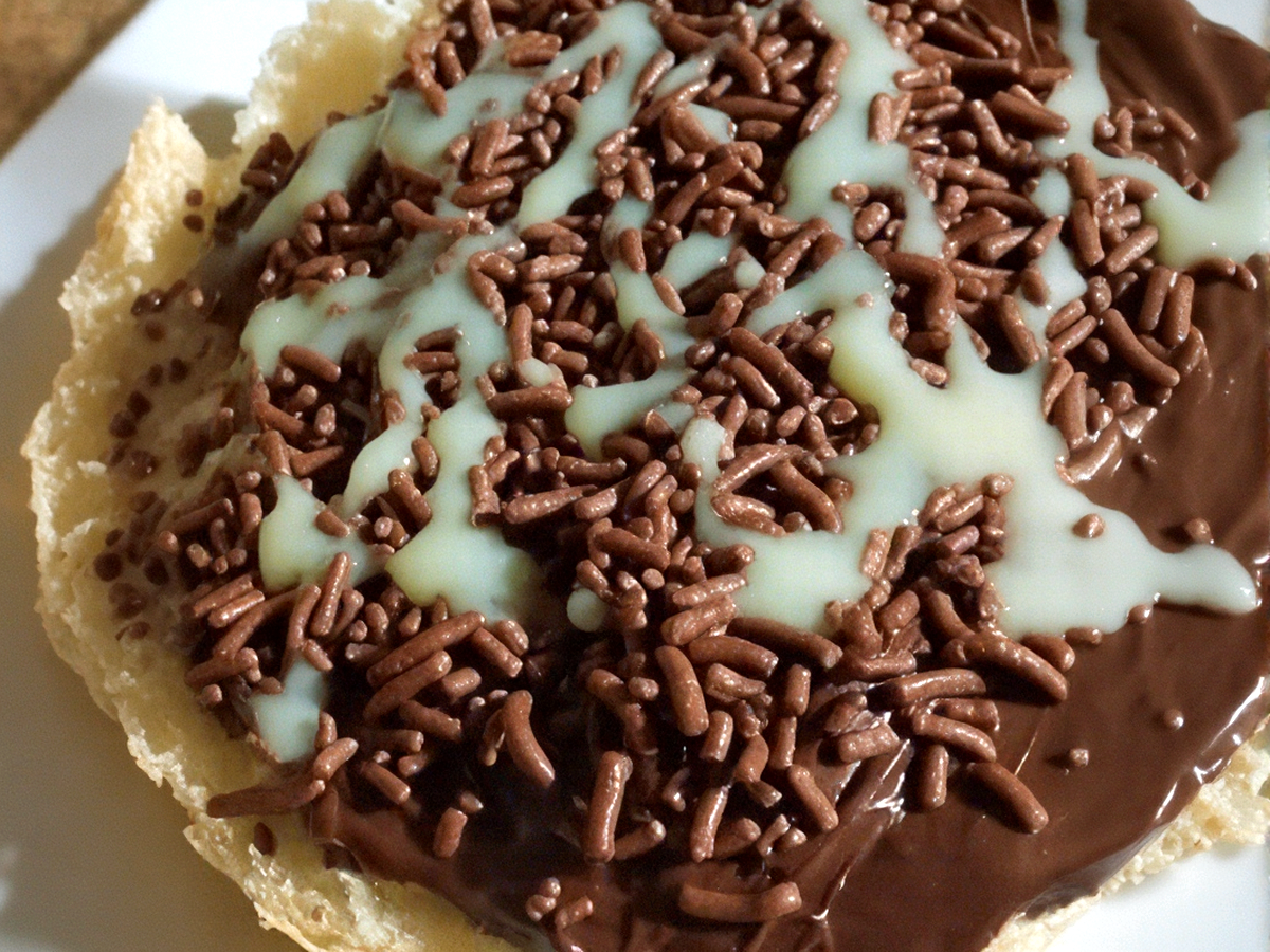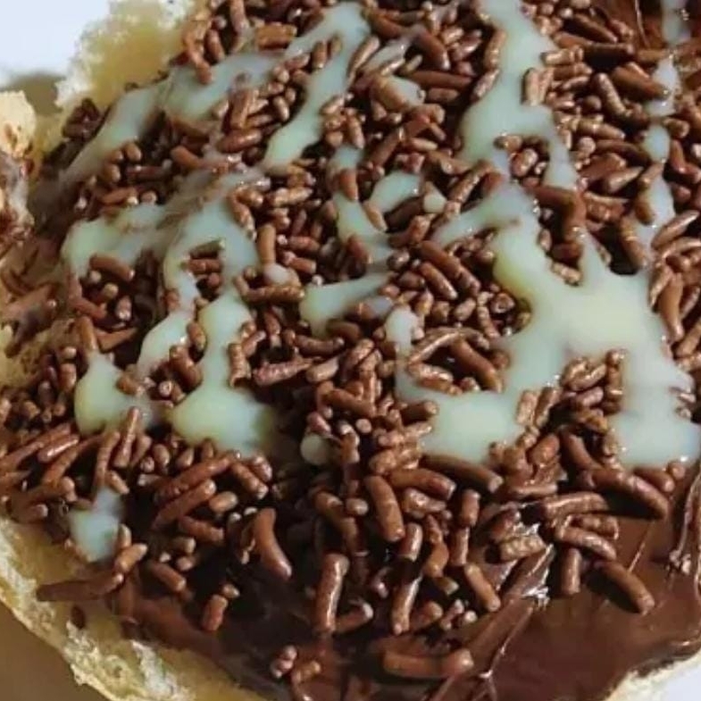 Pão, chocolate ao leite, granulado de chocolate e leite condensado