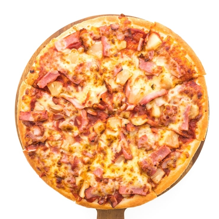 Molho, mussarela, presunto, ovo, cebola e orégano