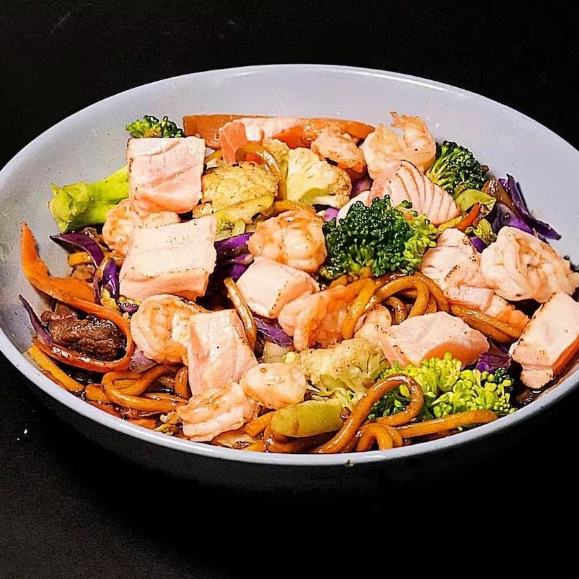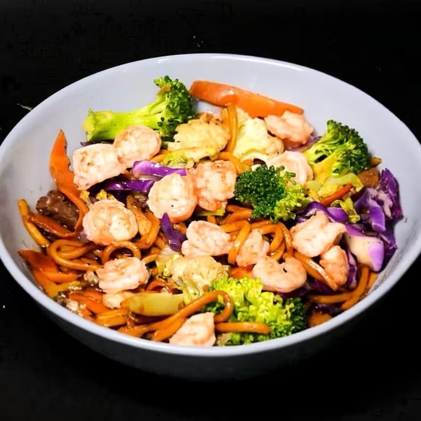 Yakissoba Tradicional: macarrão oriental, com carne e frango, misturado com legumes salteados (acelga, brócolis, cenoura, couve-flor, repolho verde e roxo). Finalizado com delicioso molho especial de yakissoba.