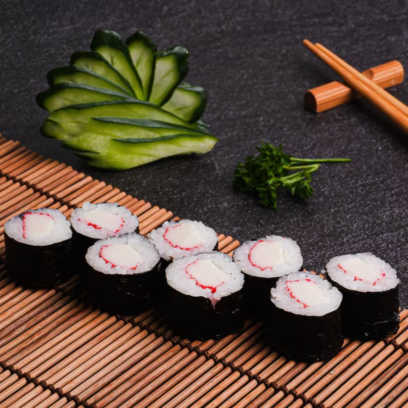 Sushis enrolados e quentinhos recheados e cobertos com camarão e cream cheese cremoso.