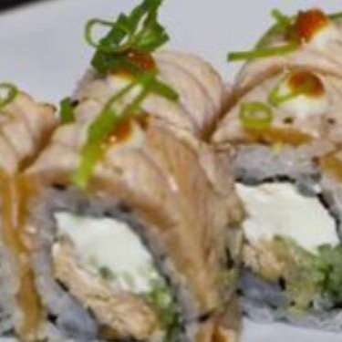 Arroz japones coberto com salmão selado, maionese, pimenta galo e cebolinha - 4 unidades