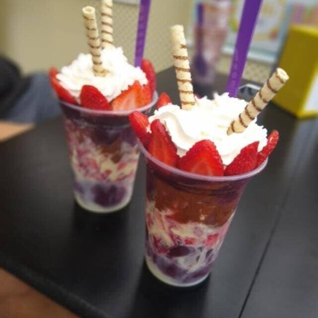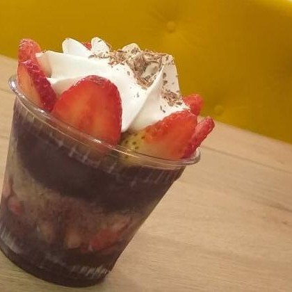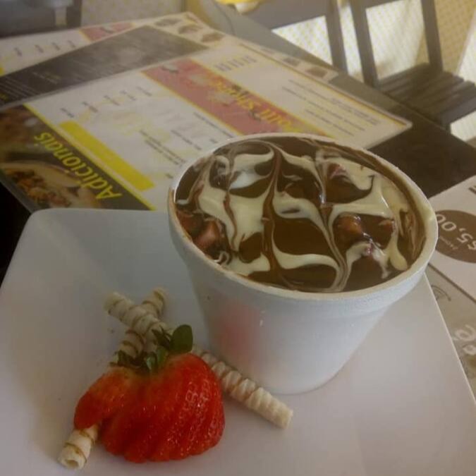 Açaí, morango, Ovomaltine, leite condensado, chantilly.