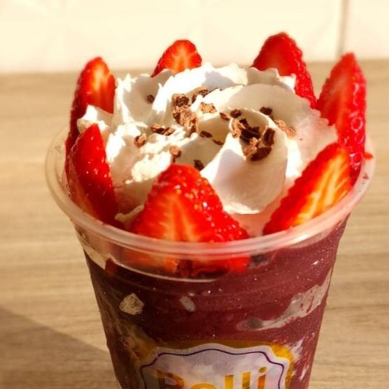 Açaí, morango, suspiro, creme de Ninho, chantilly e leite condensado