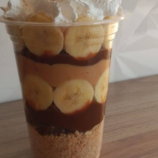 Paçoca, Doce de leite, Banana, Pasta de amendoim, Chantilly e Canela.