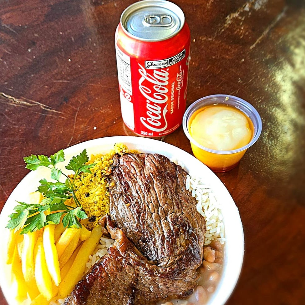 Nossa opção para a família, acompanha uma porção de arroz bem fresquinho, uma porção de feijão com aquele caldo encorpado e com cheirinho de alho, , uma porção de batata frita , uma porção de salada e a carne de sua escolha. Tamanho da sua escolha Caseiro e gostoso.