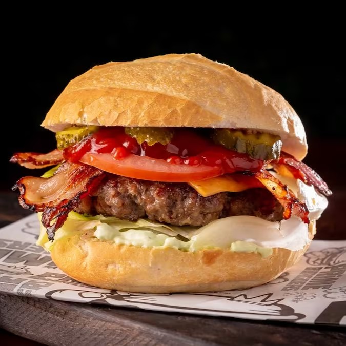 O Original muito bem feito, pão a sua escolha, 1 Hambúrguer Angus, queijo cheddar, bacon, ketchup, picles, alface americana, tomate e maionese especial.