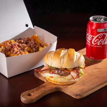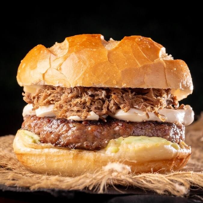 Feito com carne de costela desfiada e cozida lentamente. Servido no pão de sua preferência, 1 Hambúrguer Angus, cream chease e a deliciosa maionese da casa.