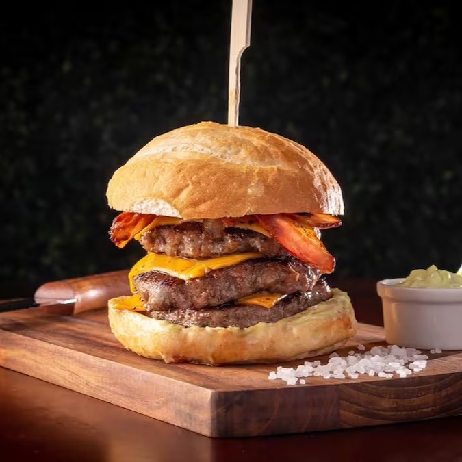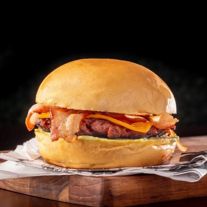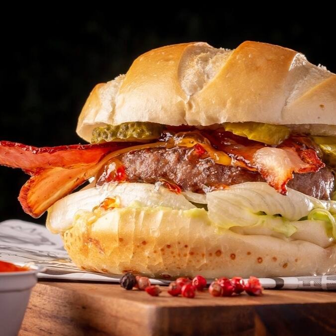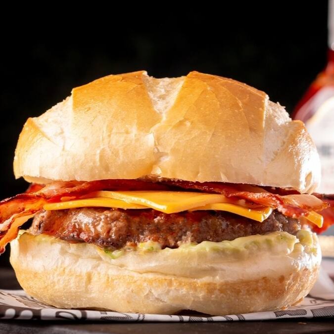 Clássico irresistível!! Pão, 1 Hambúrguer Angus, generosa camada de queijo cheddar, bacon e maionese da casa.