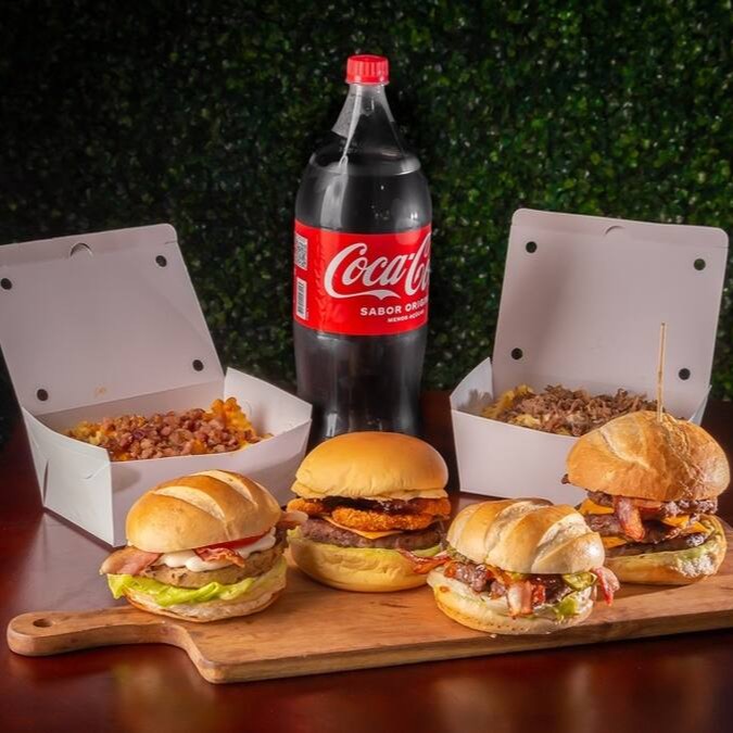 Esta oferta irresistível inclui quatro hambúrgueres gourmet, que podem ser selecionados de acordo com a sua preferência, para satisfazer todos os gostos. Acompanham duas generosas porções de batatas fritas, cada uma pesando 300g. Para completar, um refrescante refrigerante de 2 Litros. Caso deseje substituir o pão New York pelo delicioso pão Brioche, basta informar nas observações.