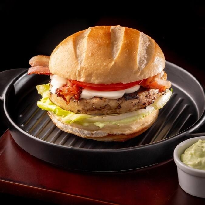 Pão, 1 Hambúrguer de Frango, camada de cream chease, bacon, alface americana, tomate e maionese da casa. Prove e se apaixone pelo nosso lanche de frango que une sabor e suculência a cada mordida!!
