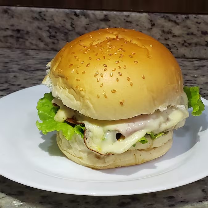 Pão, Hambúrguer 90g, File de Frango, Ovo, Queijo, Presunto, Tomate, Alface, Batata Palha, Maionese.