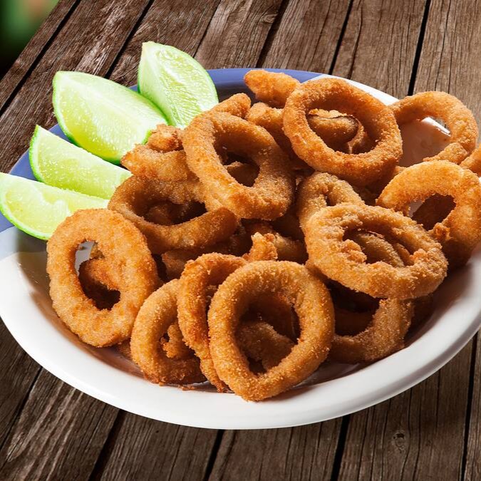 Deliciosa porção de anel de cebola.