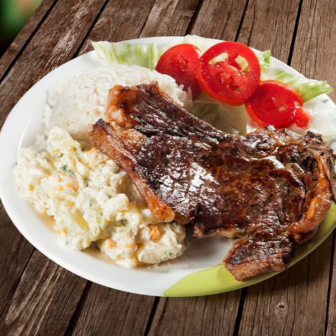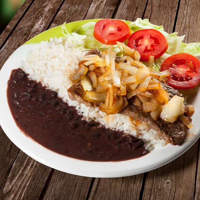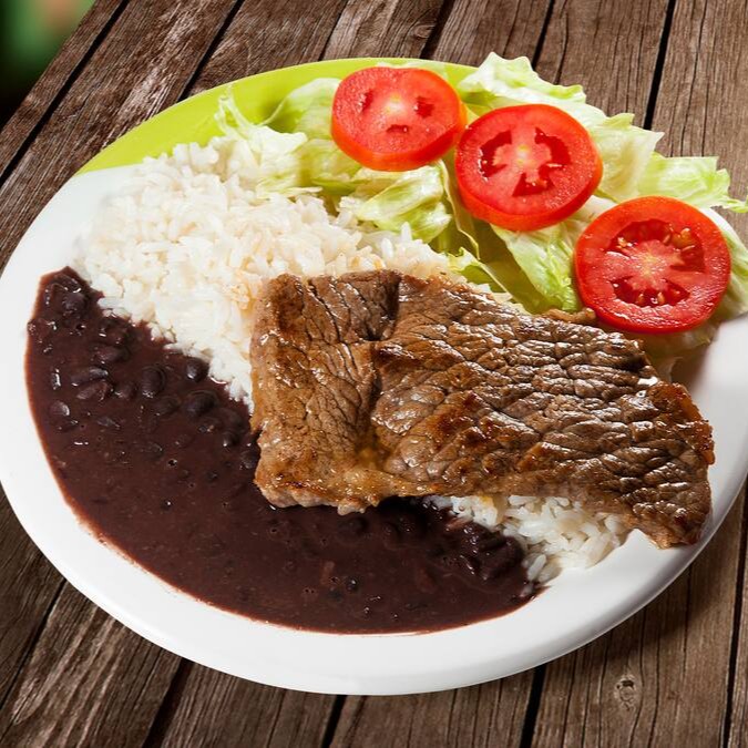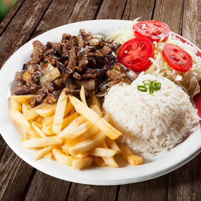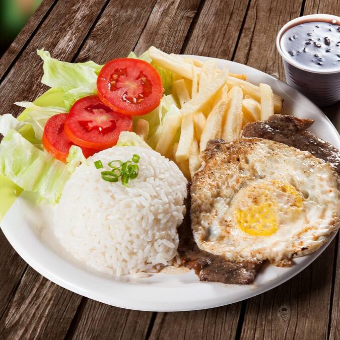 Arroz, Bife (bovino), ovo, Fritas