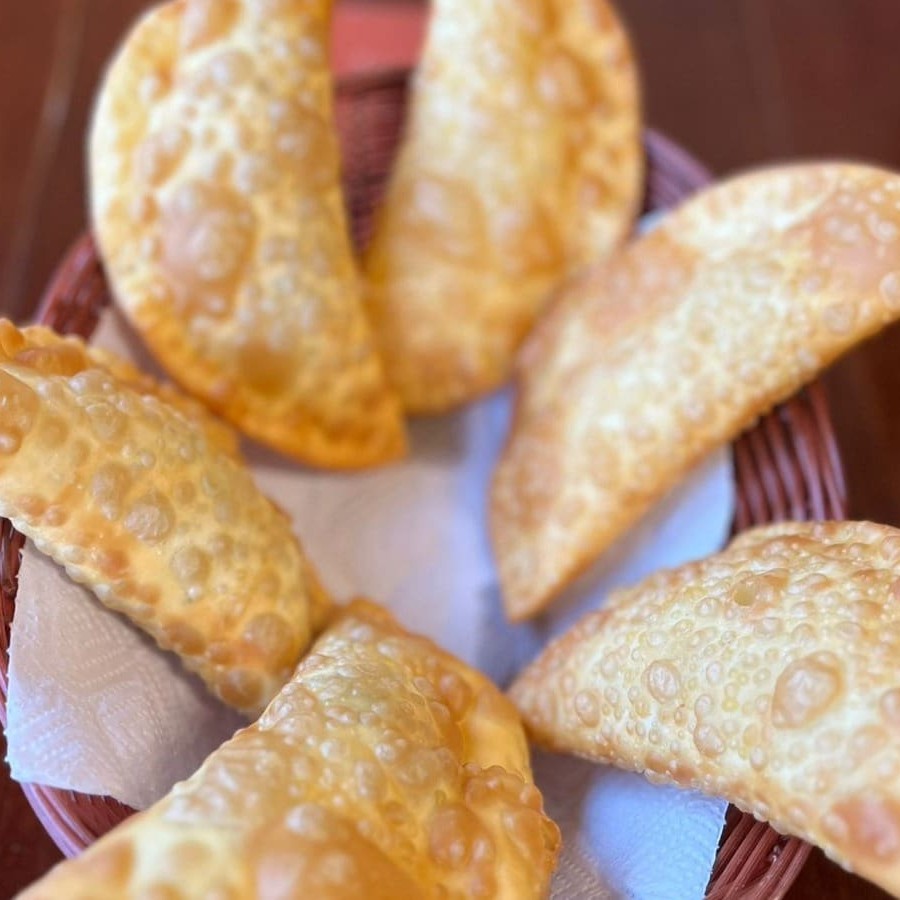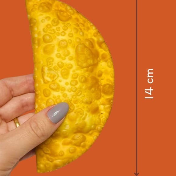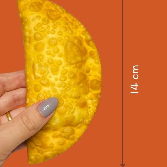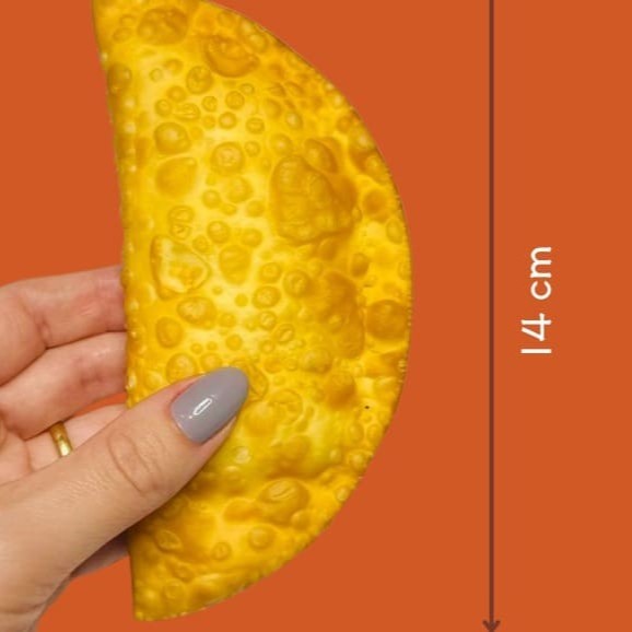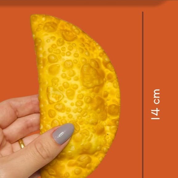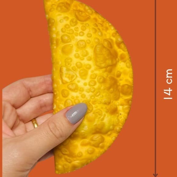 Cestinha com 6 pasteis de 14 cm nos sabores tradicionais. escolha os sabores: carne, frango, pizza, calabresa, queijo, presunto, palmito. Colocar os sabores na observação.