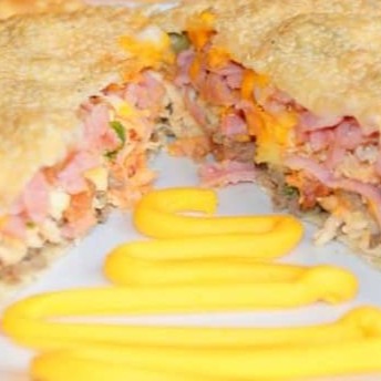 Carne, frango, queijo, presunto, bacon, calabresa, milho, azeitona, ovo, Catupiry e cheddar