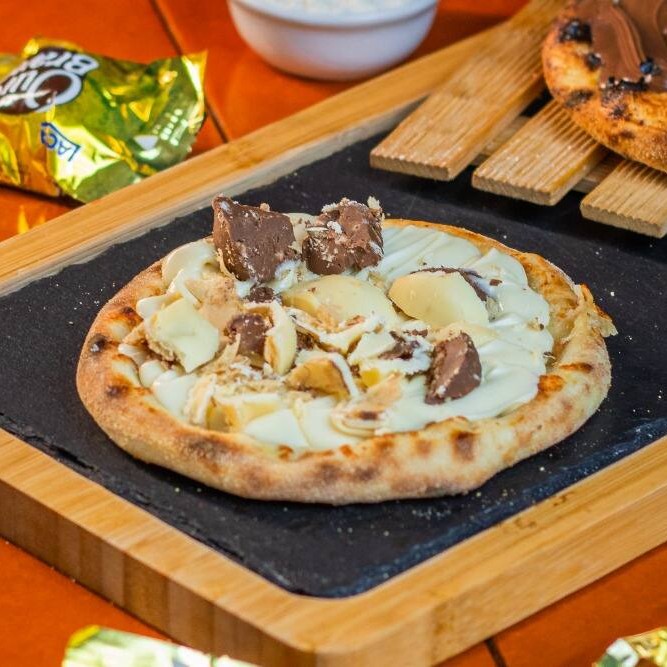 Massa fresca (artesanal), chocolate branco e Ouro Branco