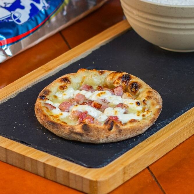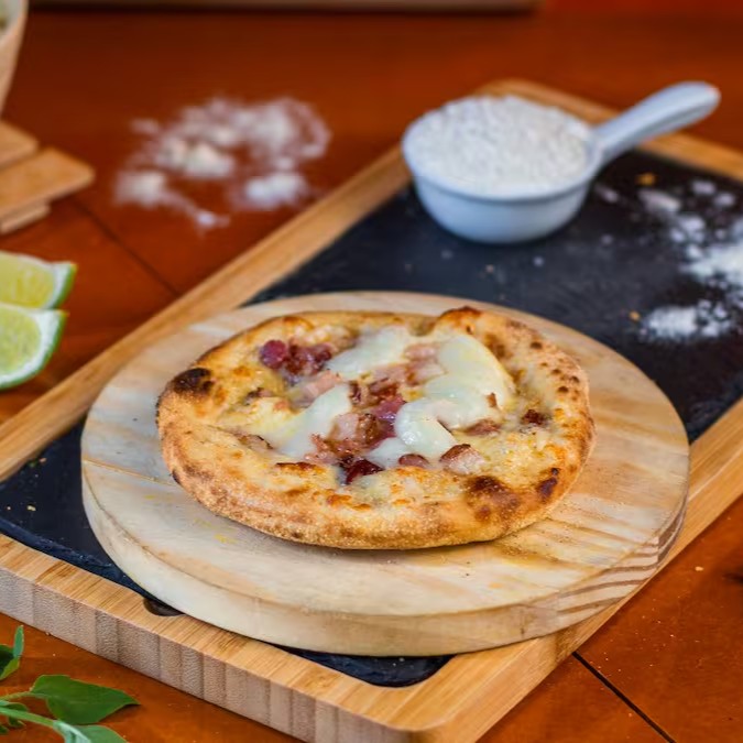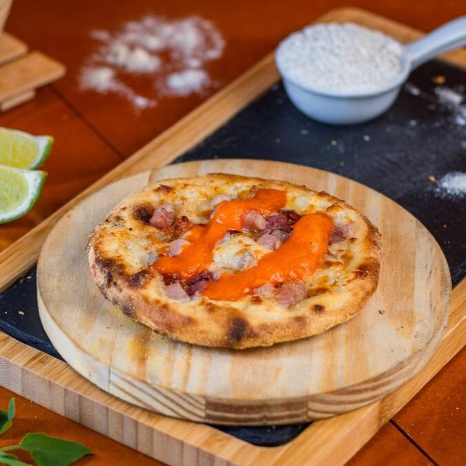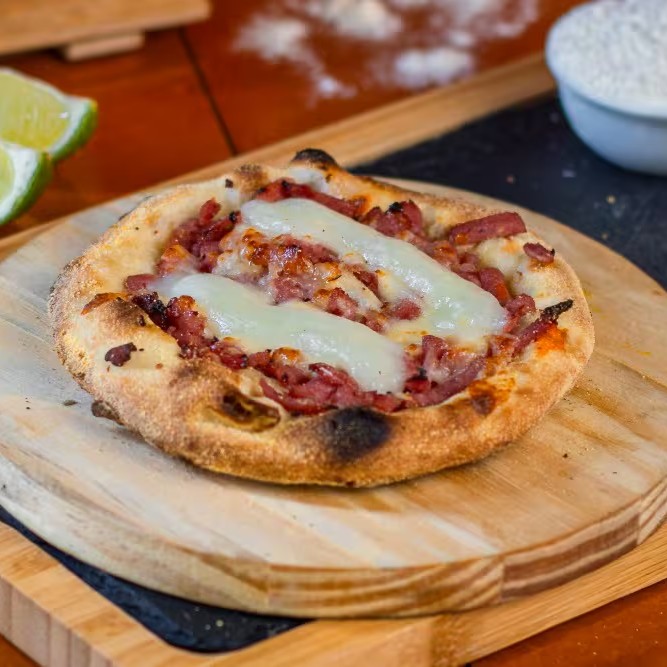 Massa fresca (artesanal), Mussarela, Bacon e cheddar