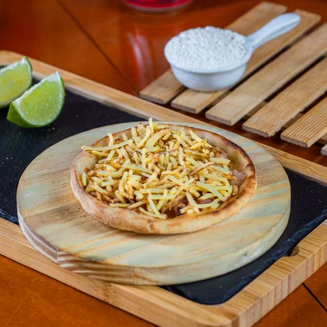 Massa fresca (artesanal), Mussarela, bacon e batata palha.